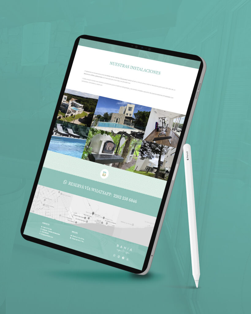El proyecto comprendió el diseño y puesta en marcha de un nuevo sitio web para Bahía Apart & Spa, teniendo en cuenta no sólo mantener la línea estética definida por el manual de marca sino también la realización de la fotografía del complejo y la generación de contenido en video para su posterior uso en Redes Sociales.